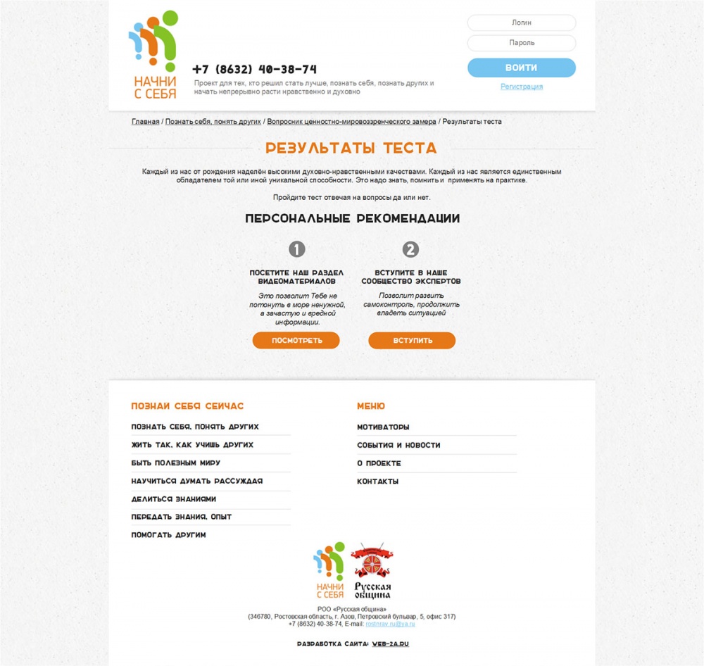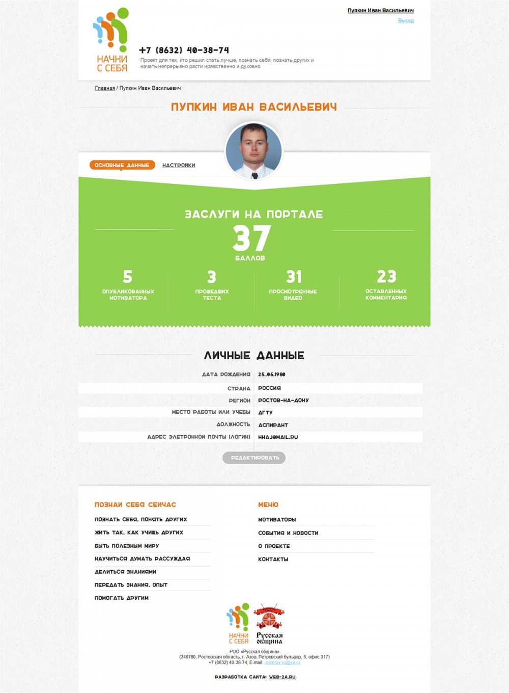 Это развивающий ценностно-мировоззренческие установки культуры здорового образа жизни сайт. Он погружает нас в мир самосовершенствования, раскрывает безграничные возможности наших творческих способностей.