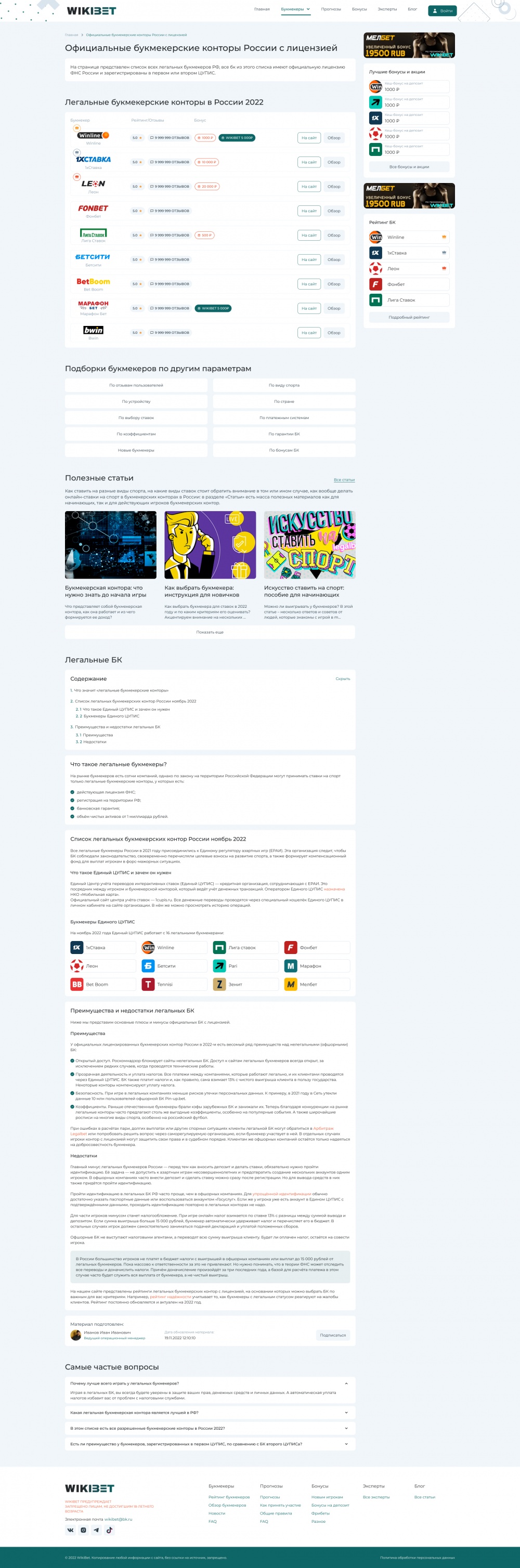 Информационный портал рейтинга букмекеров