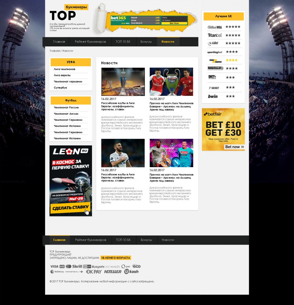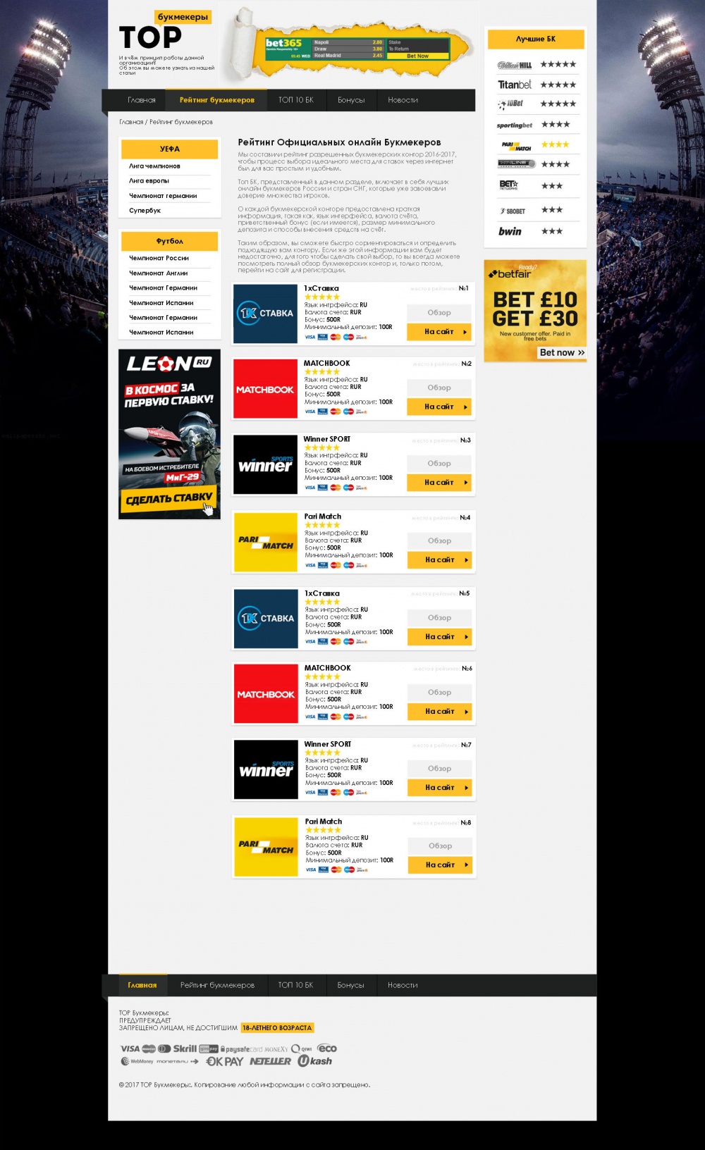 Главная / Наши работы / Информационный портал / Рейтинг-сайт букмекерских контор