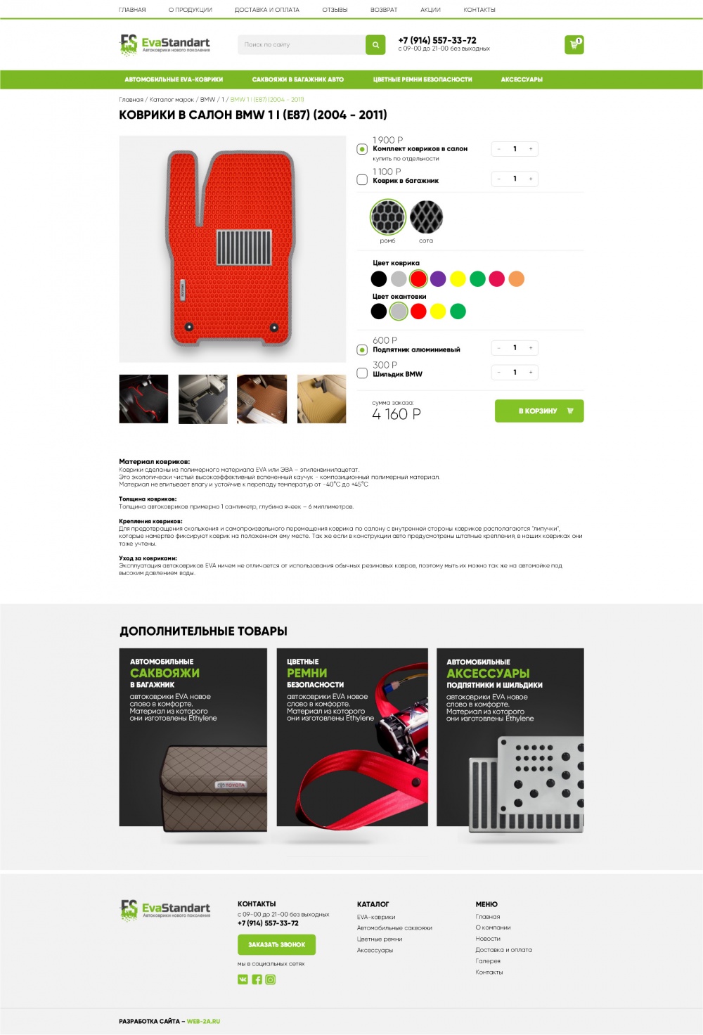 Главная / Наши работы / Интернет магазин / Интернет-магазин автоковриков Eva-Standart
