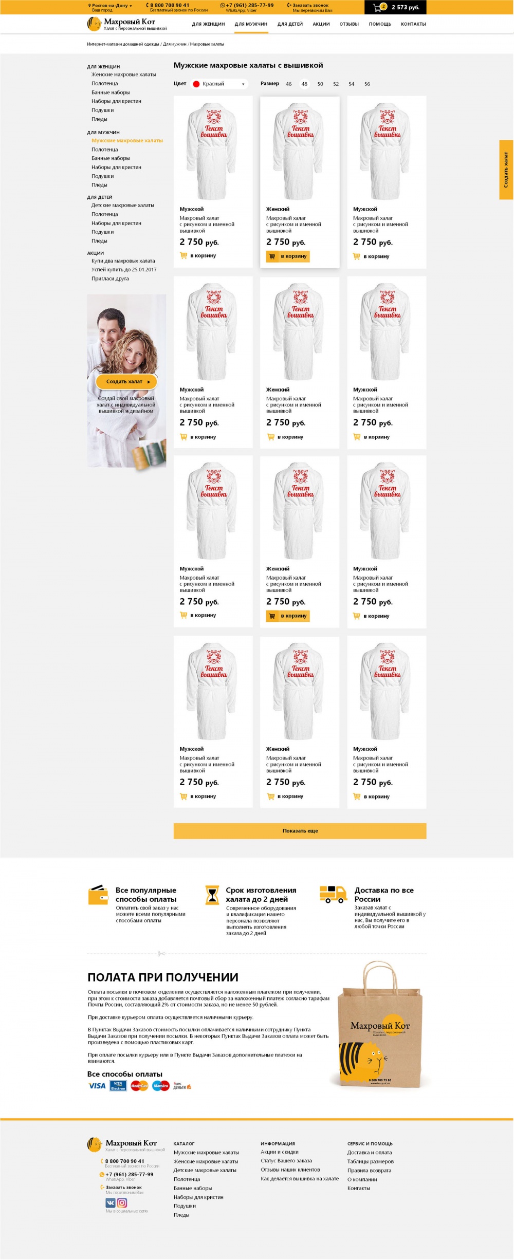 Главная / Наши работы / Интернет магазин / Интернет-магазин вышивки на махровых халатах