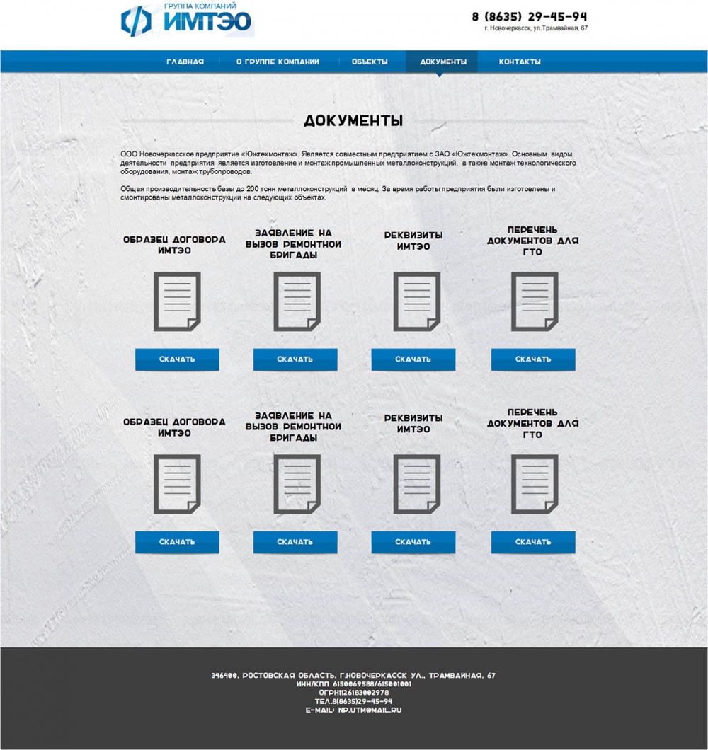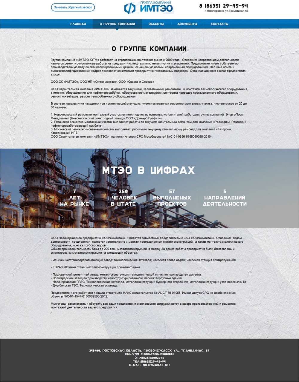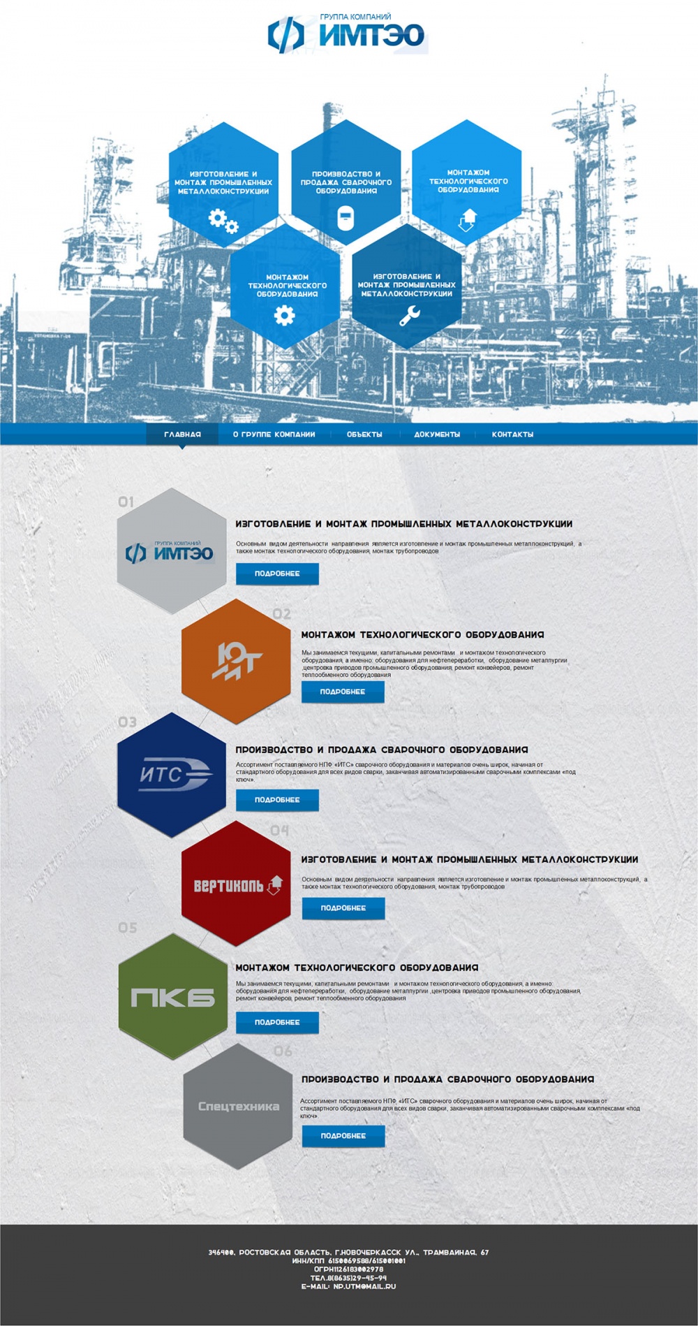 Группа компаний «ИМТЭО» работает на строительно-монтажном рынке с 2009 года. Основным направлением деятельности являются ремонтно-монтажные работы на предприятиях нефтехимии, металлургии и энергетики.