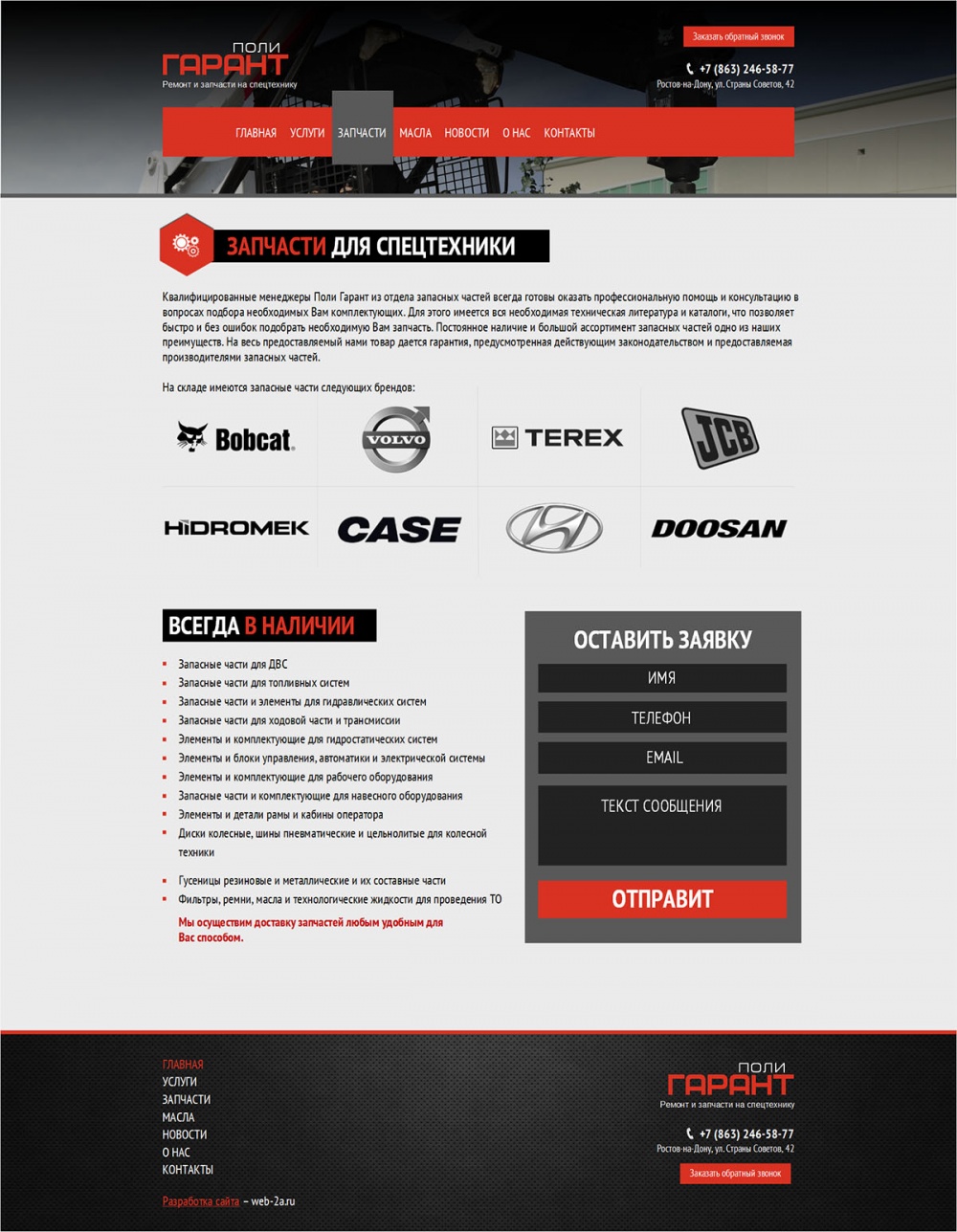 Главная / Наши работы / Корпоративный сайт / Сайт-каталог запчастей для спецтехники