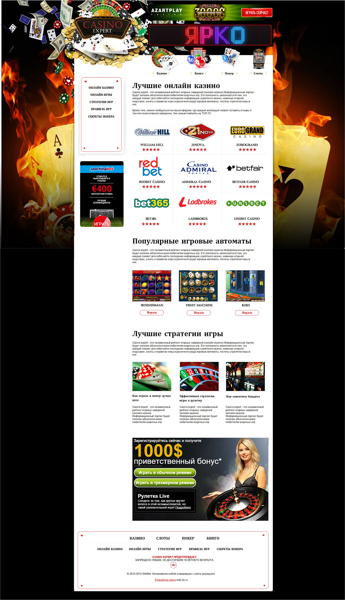 Путеводитель по новостям игорной индустрии. Актуальный рейтинг интернет-казино и онлайн-покера. Сайт разработан специально для всех любителей казино онлайн.