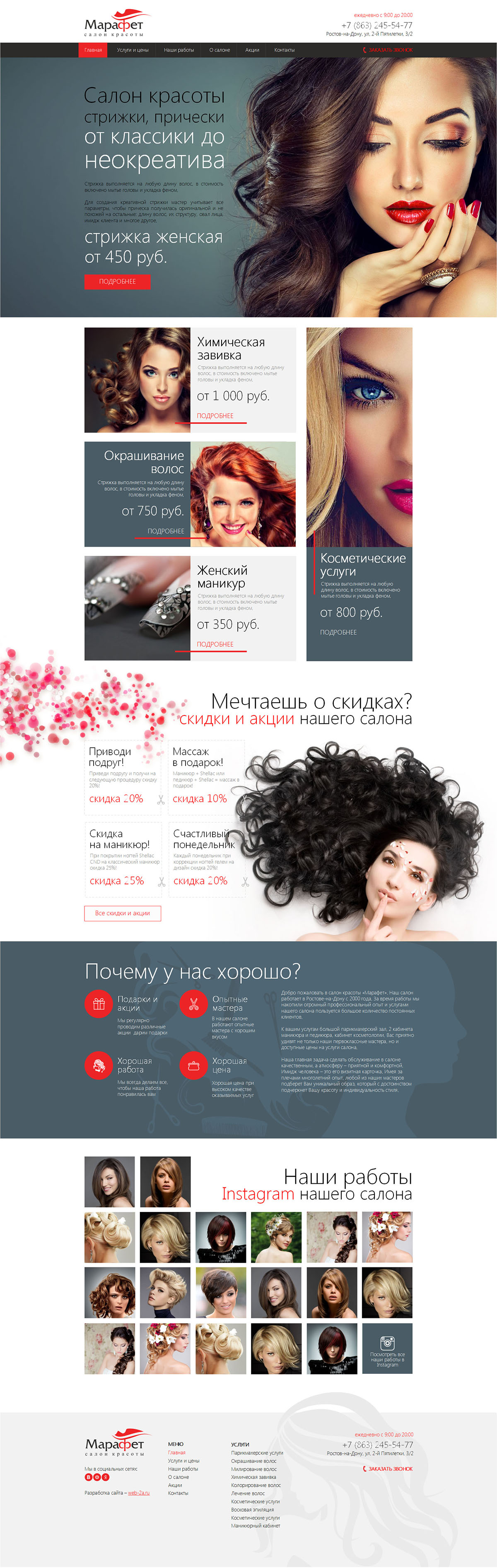 Добро пожаловать в салон красоты «Марафет». Наш салон работает в Ростове-на-Дону с 2000 года. За время работы мы накопили огромный профессиональный опыт и услугами нашего салона пользуется большое количество постоянных клиентов.