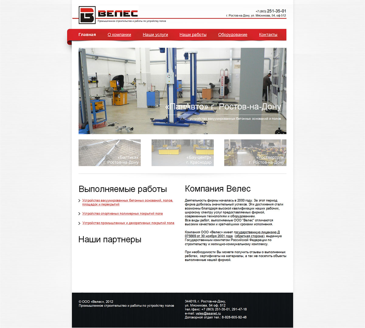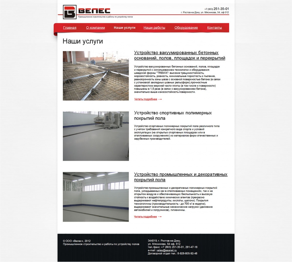Компания выполняет работы по устройству полимерных и бетонных промышленных полов различной сложности. Более 10 лет на рынке строительных услуг, высокопроизводительное оборудование, квалифицированный
