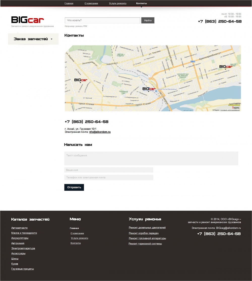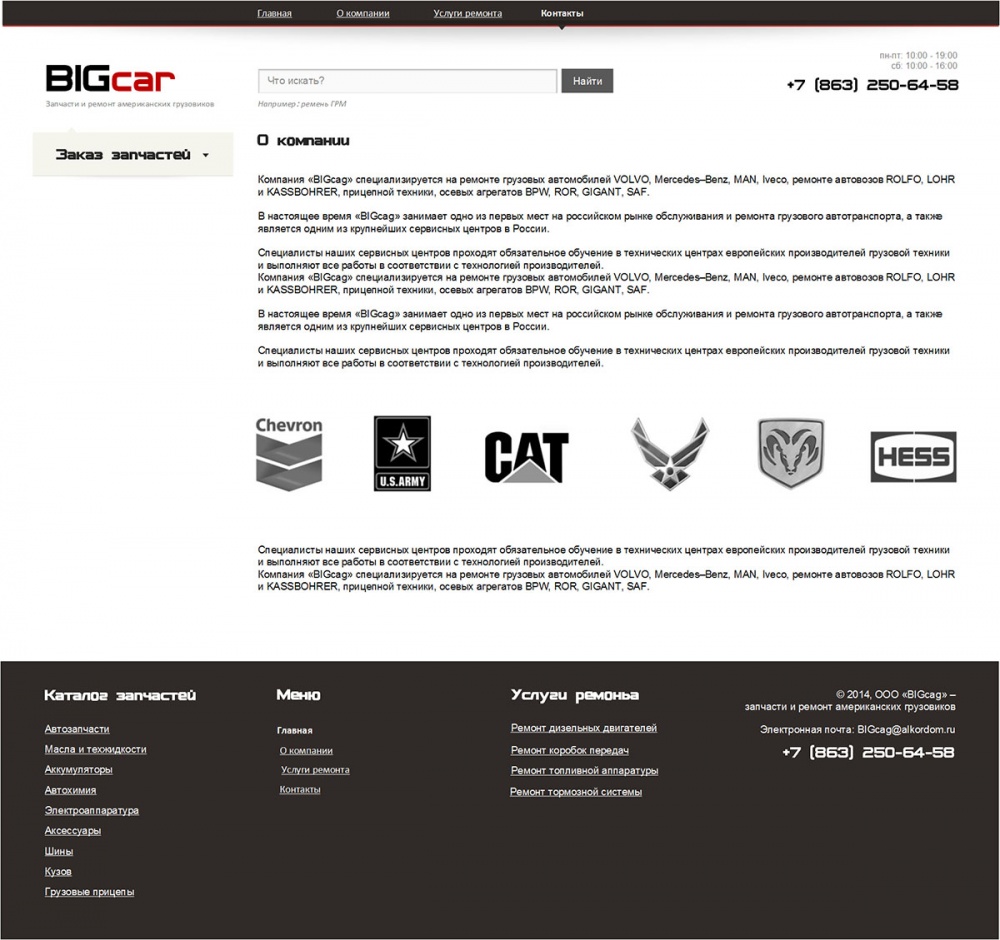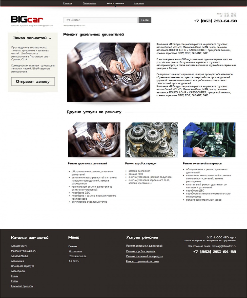 Главная / Наши работы / Сайт каталог / Сайт автосервиса для американских грузовиков