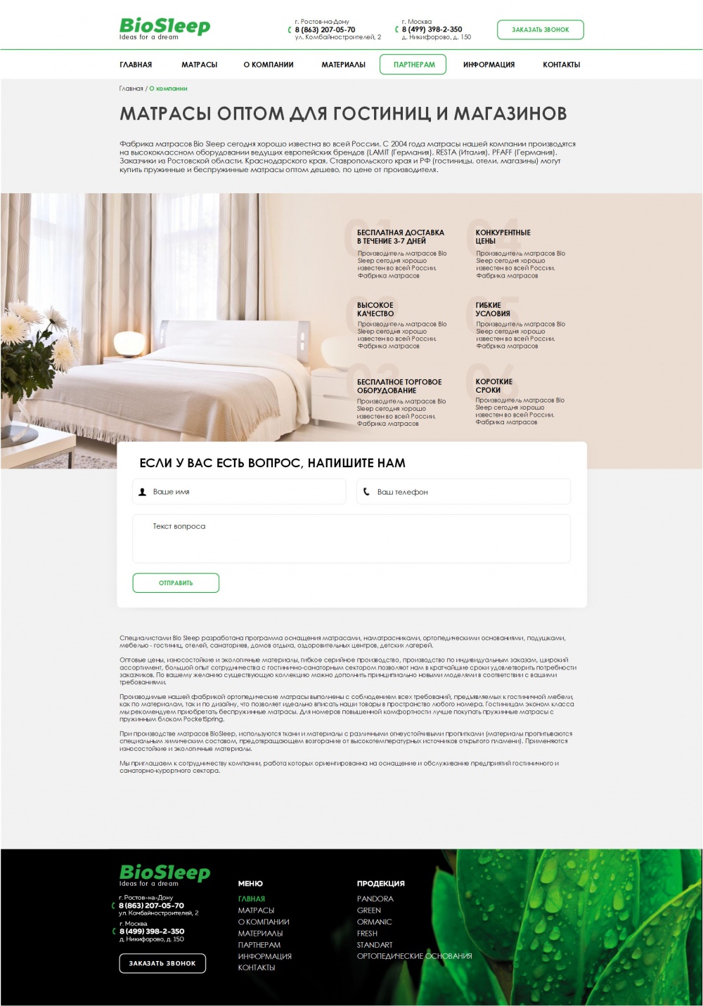 Главная / Наши работы / Сайт каталог / Сайт производителя матрасов Bio-Sleep
