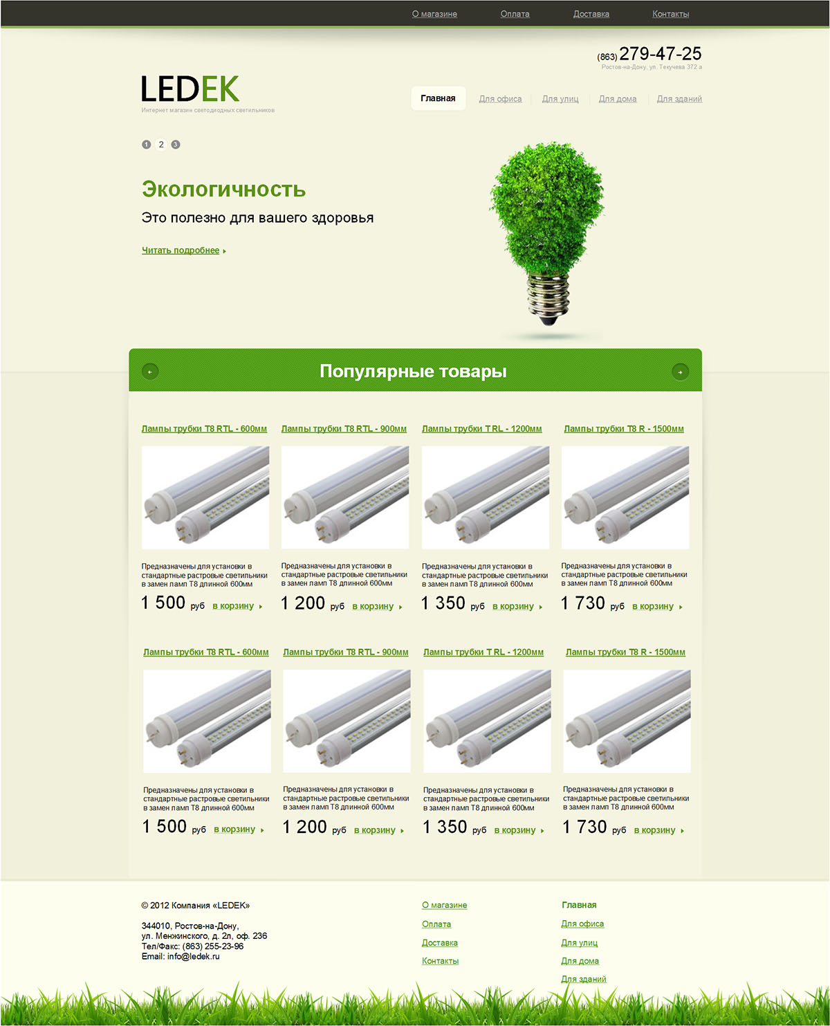 Ledek осуществляет продажу модульных систем светодиодных светильников практически с любым световым потоком. Предлагает аудит системы освещения, энерго-технический проект, проект освещения и экономическое обоснование.