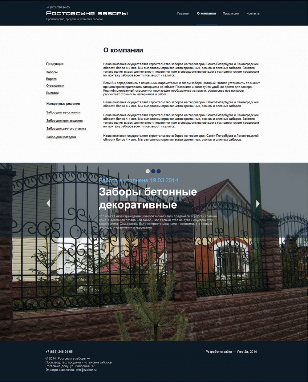 Ростовские заборы — одна из ведущих организаций на территории Ростова-на-Дону, выполняющая весь спектр сварочных и бетонных работ на объектах жилищного, гражданского и промышленного строительства по производству и установке заборов.