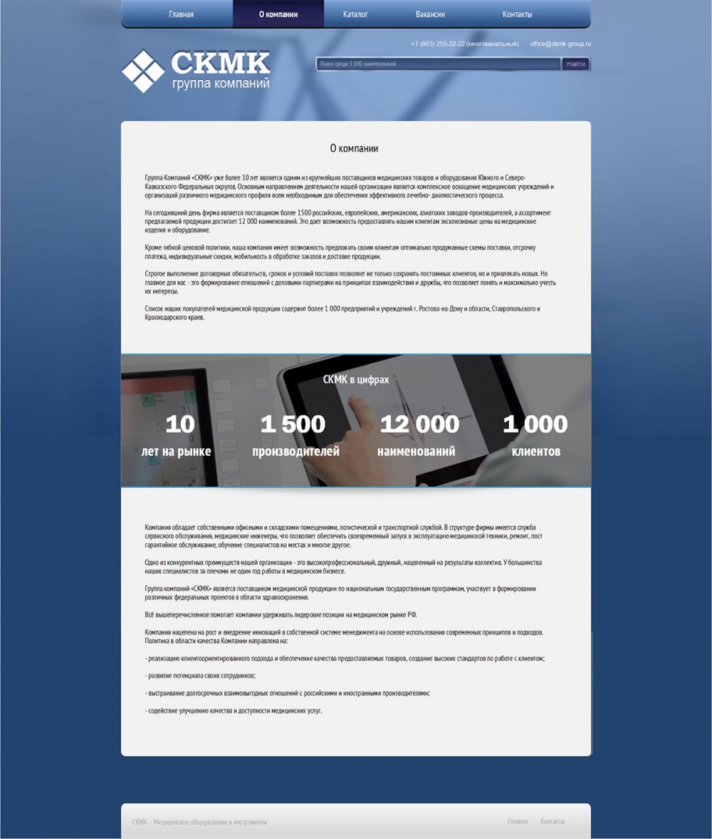 Основным направлением деятельности организации является комплексное оснащение медицинских учреждений и организаций различного медицинского профиля всем необходимым для обеспечения эффективного лечебно- диагностического процесса.